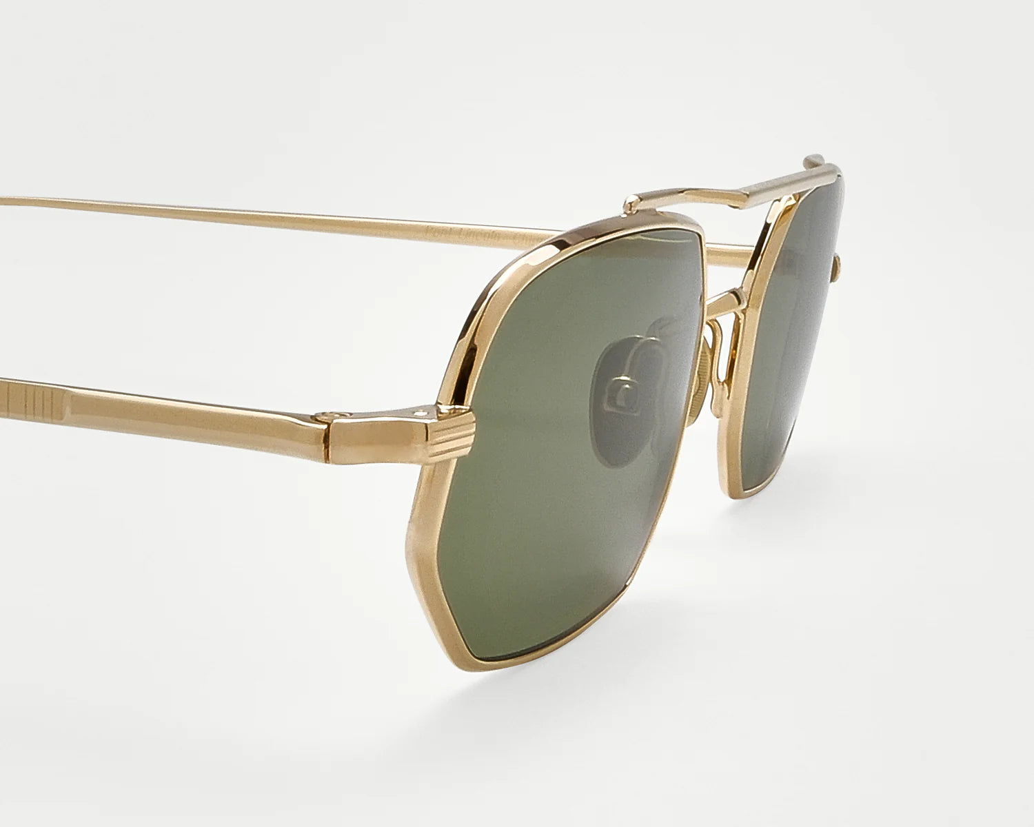 - Laser-engraved filigree nose pads that play with Bauhaus shape, made of titanium to ensure non-reactive and hypoallergenic aspects