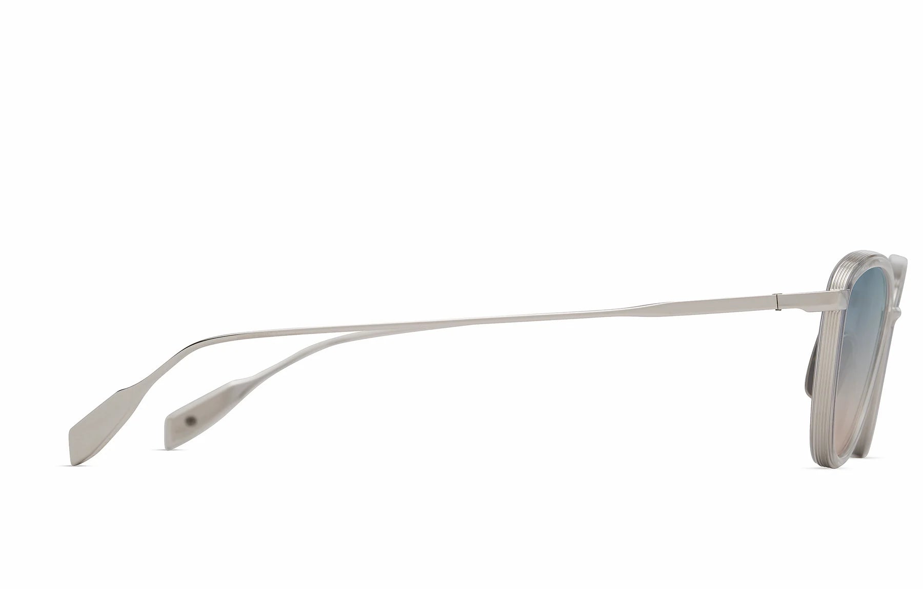 Multi-pressed line accents trace the titanium frame, introducing texture and visual rhythm. A Japanese acetate lens rim insert adds tonal depth, underscoring DITA’s mastery of layered construction. Custom titanium nose pads with diamond-pressed detailing ensure a comfortable, personalized fit throughout the day.