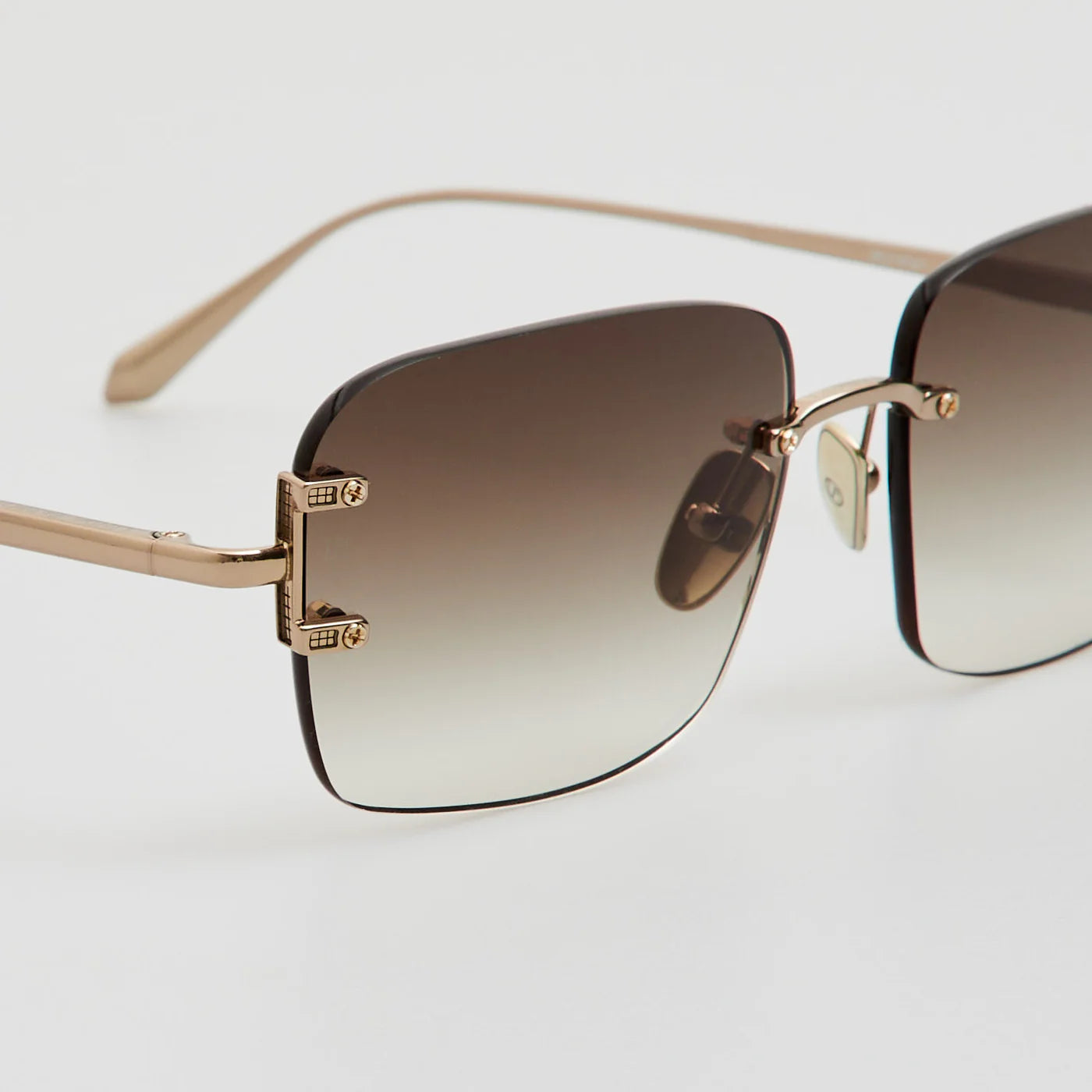 A standout piece in our collection, the Sasha Square Sunglasses embody timeless elegance with a modern twist. Featuring light-gold titanium temples and subtle mocha gradient lenses, this hero style delivers the ultimate in summer sophistication.